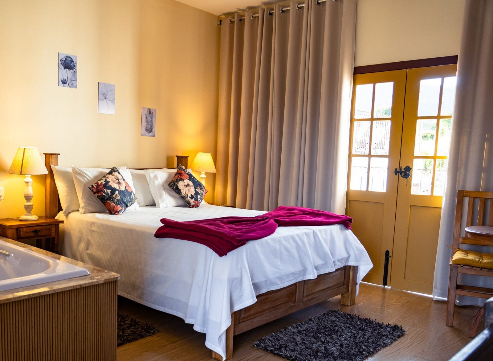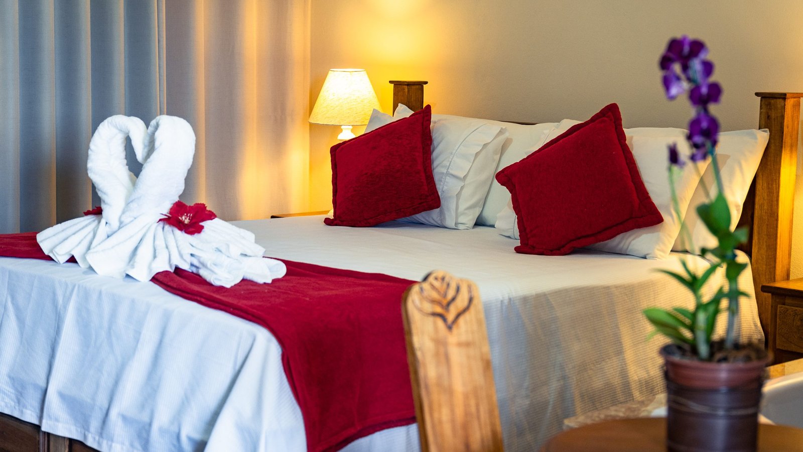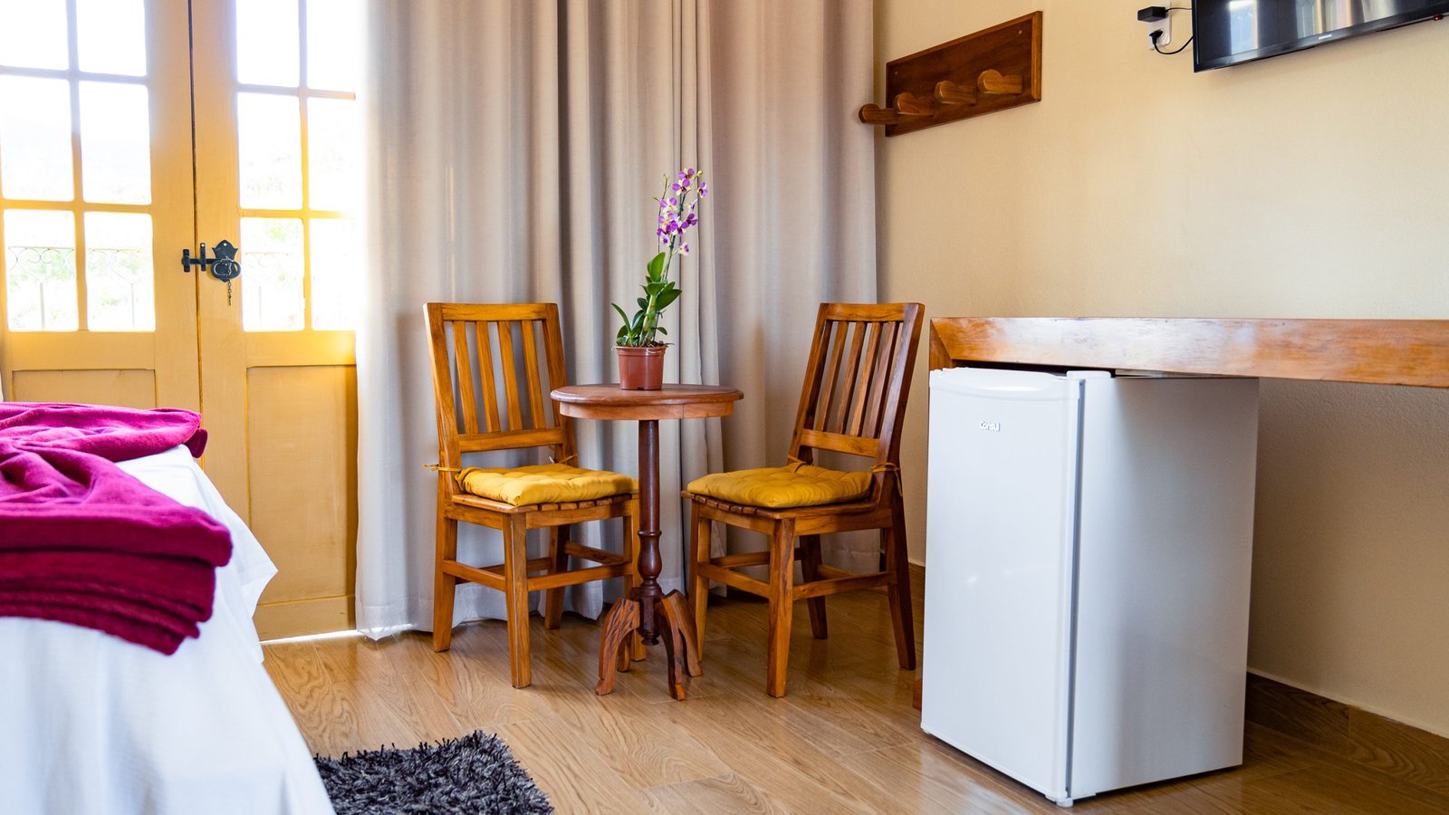 Equilíbrio perfeito entre conforto e estilo. A Suíte Luxo Plus é ideal para quem deseja um pouco mais de espaço e sofisticação. Com decoração rústica e elegante, cama queen, ar-condicionado (quente e frio), TV, frigobar e Wi-Fi, essa acomodação é perfeita para casais ou famílias (temos opções triplas e quádruplas) em busca de tranquilidade e bem-estar.